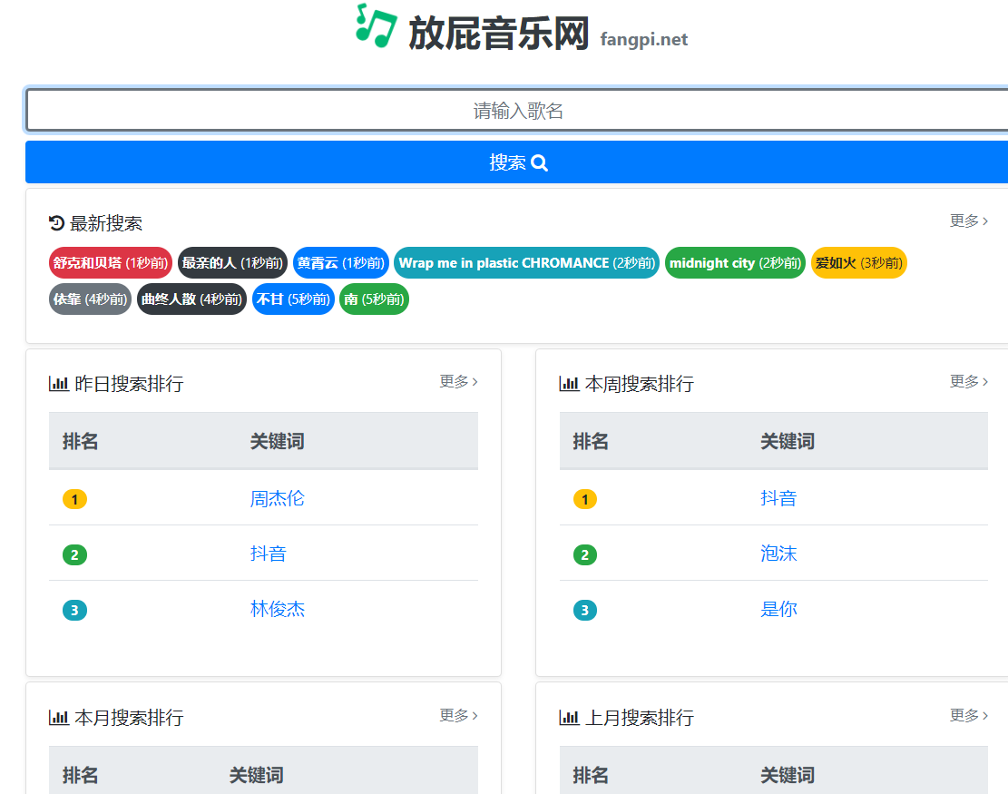 二、放屁音乐网,和歌曲宝功能一样,界面都一样