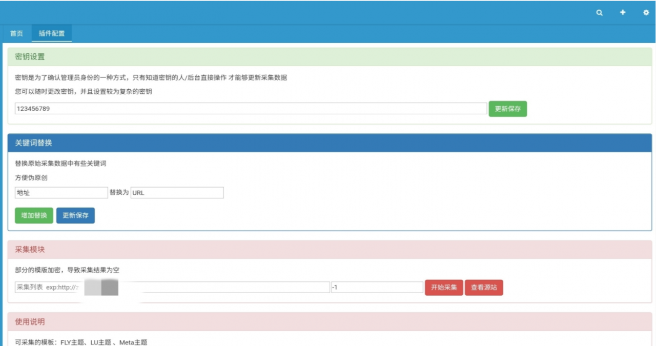 支持采集的模板:FLY主题、lu主题、Meta主题;其他自测!!!