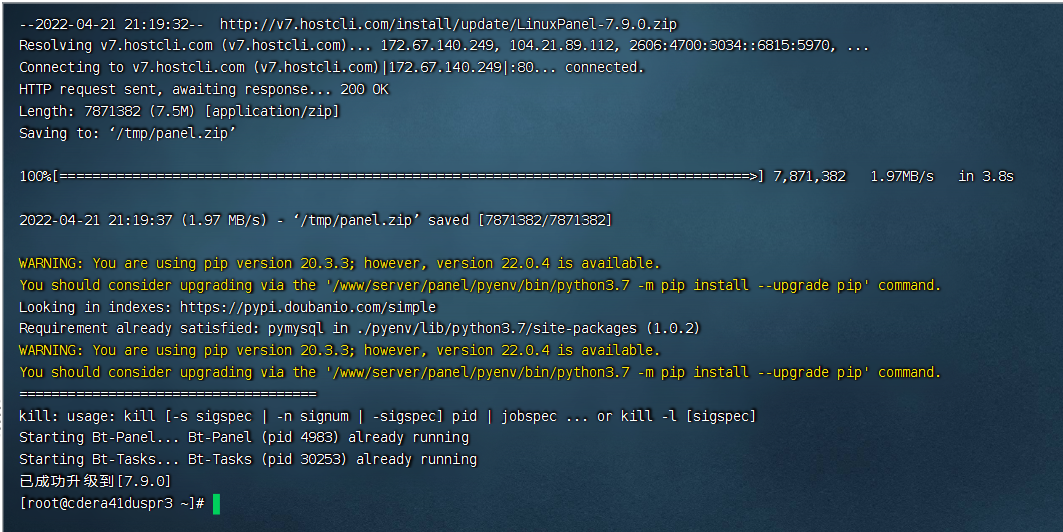 1.首先升级到官方最新版7.9版本,升级脚本(来源宝塔官方):